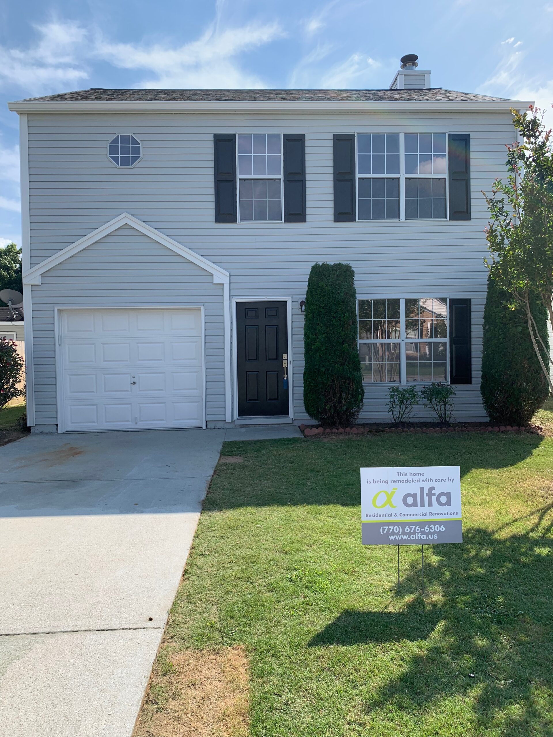 A once weathered and outdated house in Suwanee, Georgia now boasts a modern exterior after a comprehensive makeover that included fresh